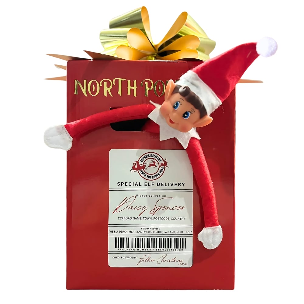 Fully personalised with your child's full name (or first names for more than one child) on their very own 'Special Elf Delivery' label from Santa all you have to do is pop your Elf's body through the letter box and wait to see your little one's faces light up when they see their special delivery!!